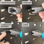 Erlebe, wie einfach Ordnung und Design miteinander verschmelzen. Mit dem BIWAMO Klick-System kannst du dein Bike und Zubehör perfekt in Szene setzen, sicher und hast immer die Übersicht.